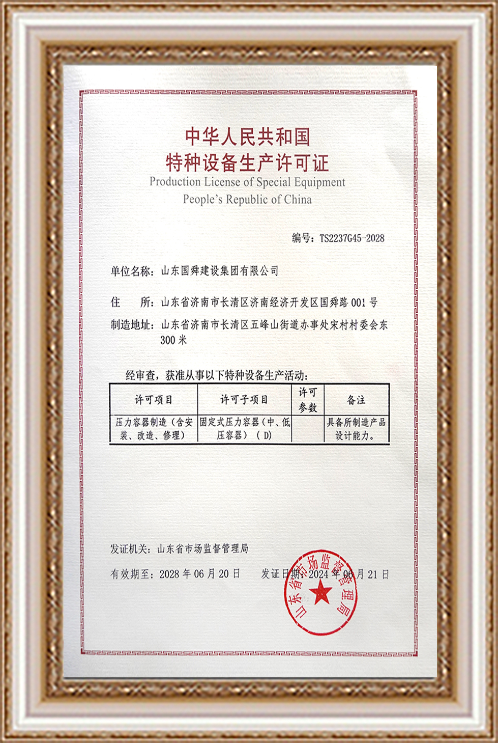 中華人民共和國特種設(shè)備生產(chǎn)許可證