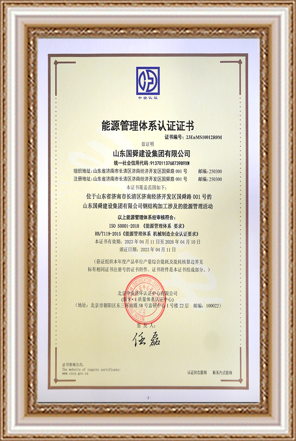 能源管理體系認(rèn)證證書