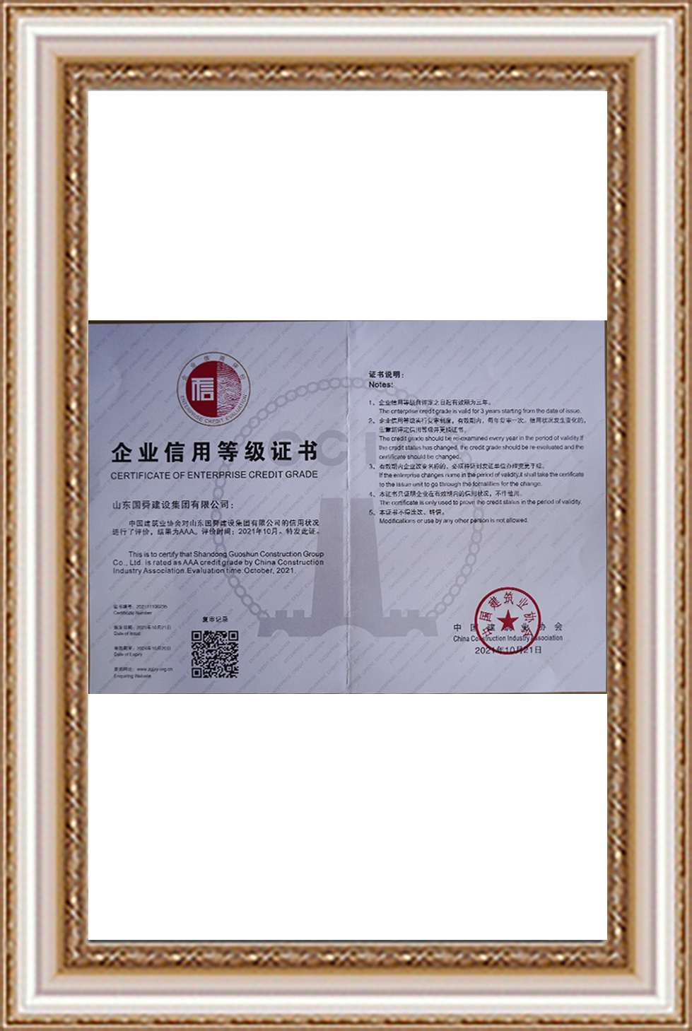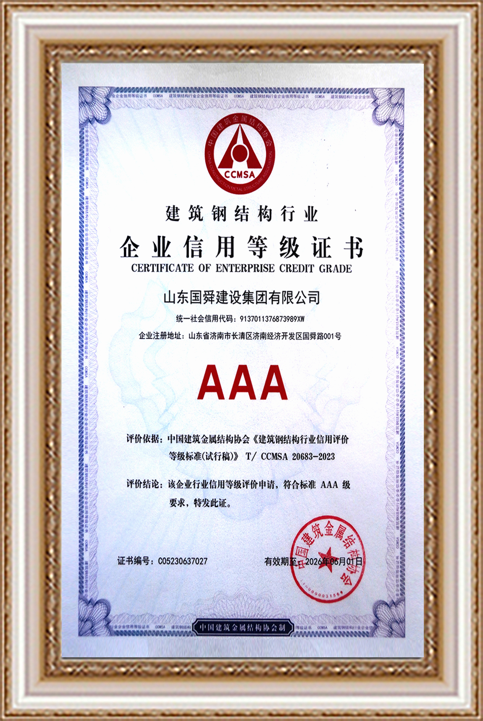 建筑鋼結(jié)構(gòu)行業(yè)企業(yè)信用AAA等級(jí)證書
