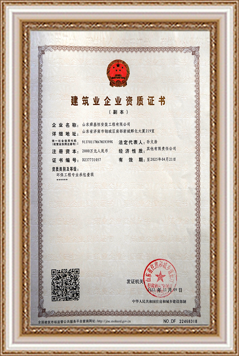 建筑業(yè)企業(yè)資質(zhì)證書