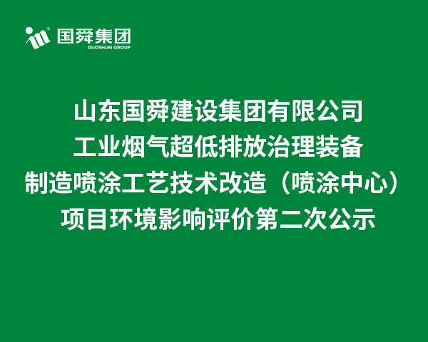 山東國(guó)舜建設(shè)集團(tuán)有限公司工業(yè)煙氣超低排放治理裝備制造噴涂工藝技術(shù)改造(噴涂中心)項(xiàng)目環(huán)境影響評(píng)價(jià)第二次公示