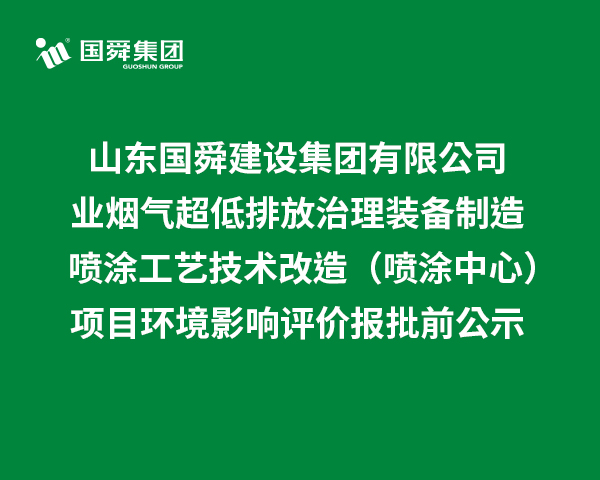 山東國(guó)舜建設(shè)集團(tuán)有限公司工業(yè)煙氣超低排放治理裝備制造噴涂工藝技術(shù)改造(噴涂中心)項(xiàng)目環(huán)境影響評(píng)價(jià)報(bào)批前公示
