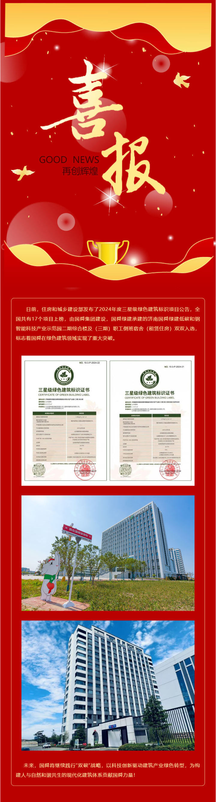 頭條 | 國家級榮譽!國舜集團兩大項目入選三星級綠色建筑標識項目!