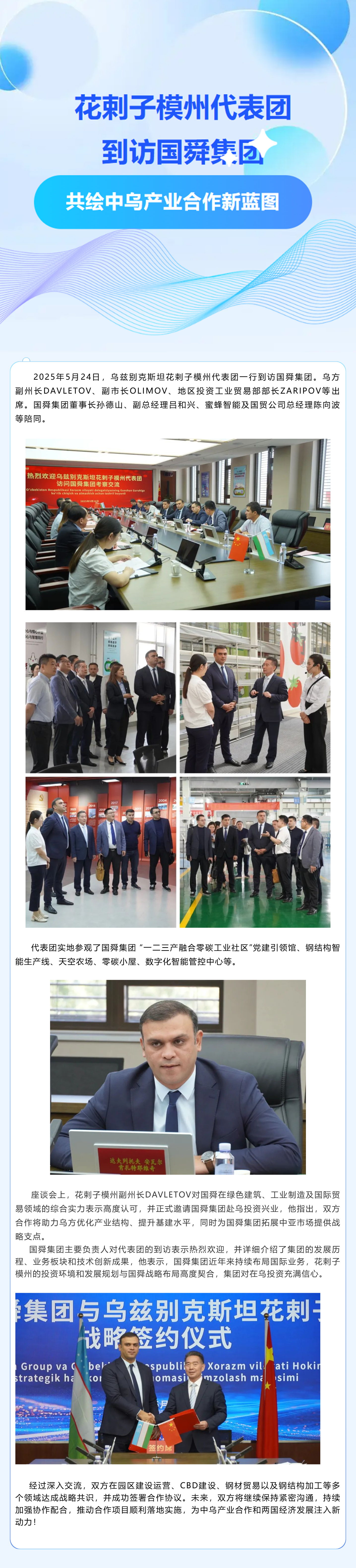 資訊 | 烏茲別克斯坦花剌子模州代表團到訪國舜集團,共繪中烏產業(yè)合作新藍圖!