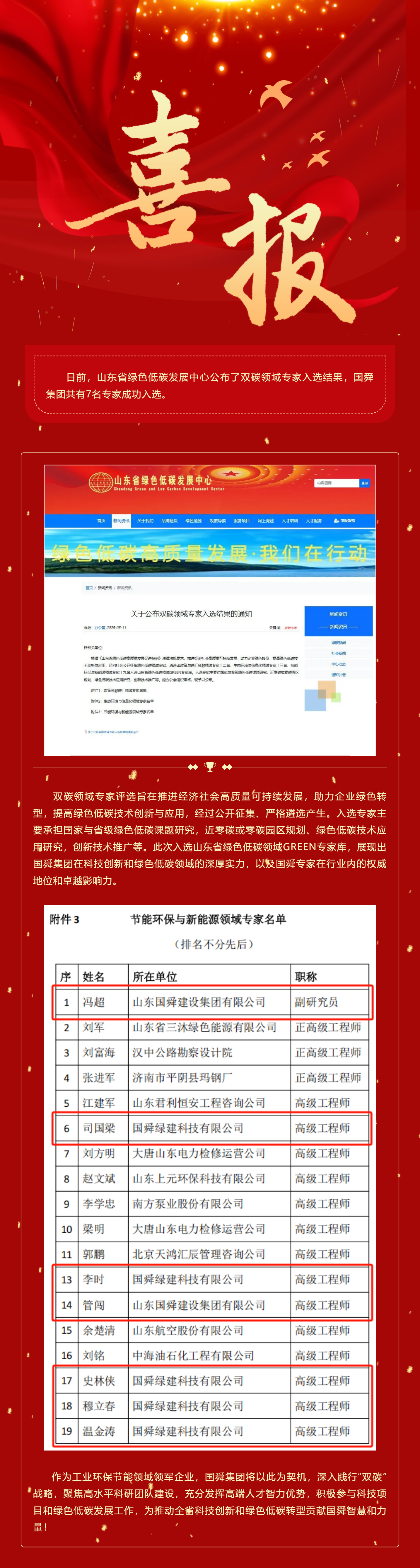頭條 | 喜報!國舜集團多名專家成功入選山東省綠色低碳領域GREEN專家?guī)欤?/p>